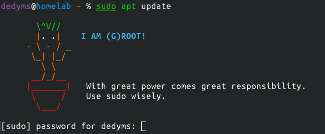 $ sudo sh -c 'toilet -f bubble --metal "Be careful with sudo" > /etc/sudo_lecture.txt'
